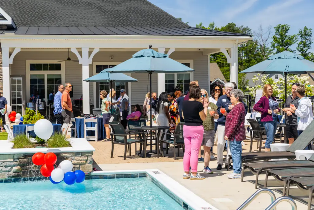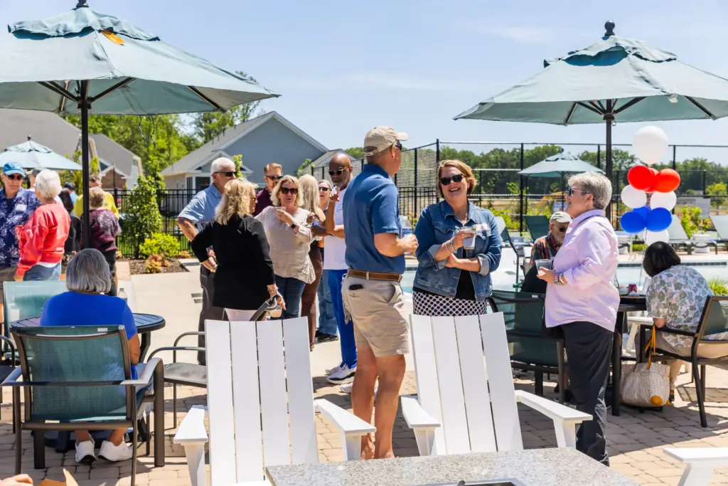 The luxurious, resort-style Clubhouse offers Chesterfield active-adults an unparalleled setting for fun and fitness. Always something to do or someone to meet, residents can exercise in the Fitness Center, relax with friends at the Sport’s Bar, brush up on their swing with the Golf Simulator, swim laps in the Heated Outdoor Pool, or discover new hobbies. The full-time Lifestyle Director plans a robust social calendar where there’s a club or party for just about anything! Every day feels like a vacation at this 55+ community in VA – setting the new standard in Chesterfield County for its first-class amenities.