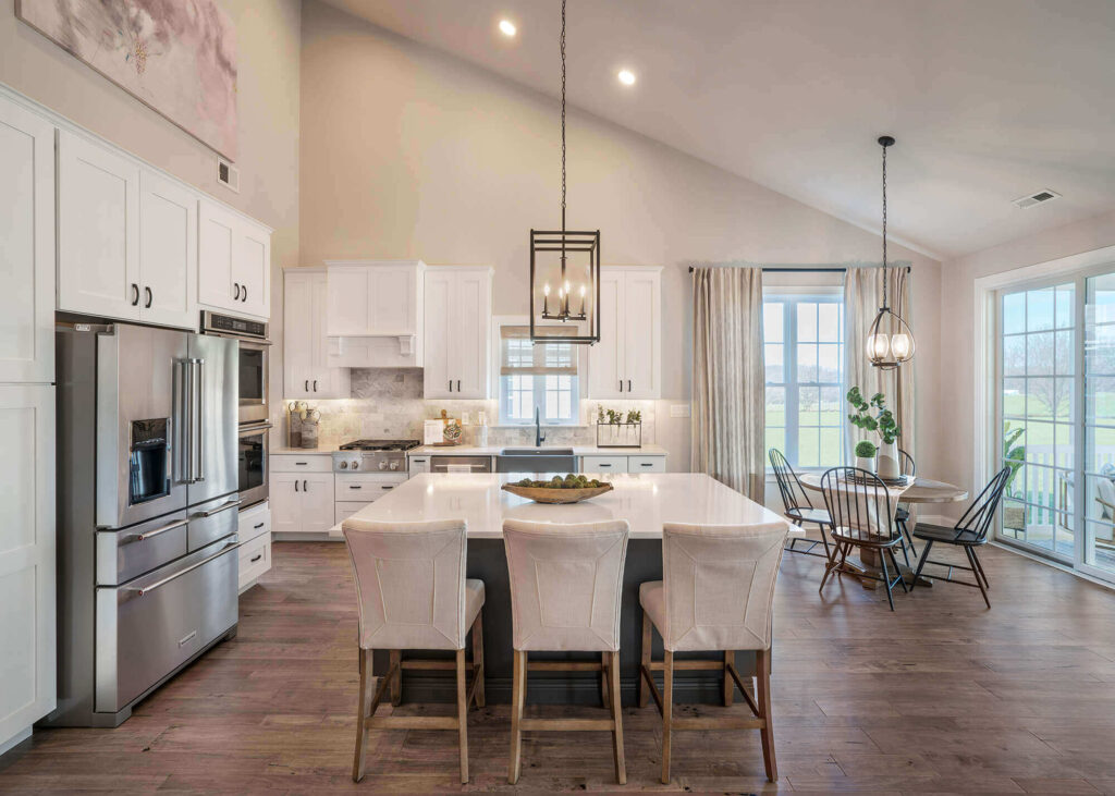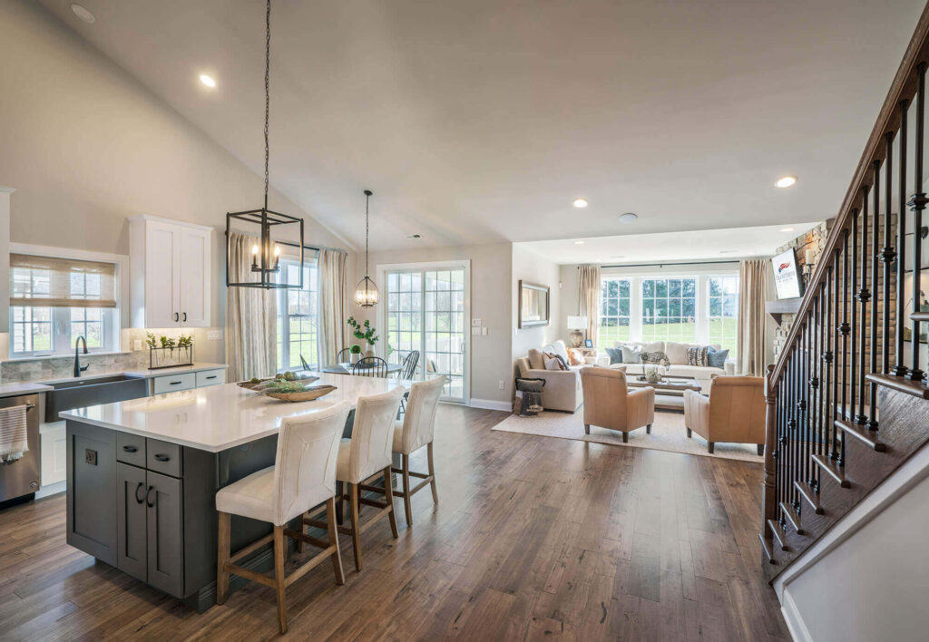 The Hancock is a true dual Master, luxury home that our 55 plus homebuyers rave about. In addition to double first-floor Masters both with En Suite Baths and Walk-In Closets, the thoughtfully redesigned Hancock includes an expansive Butler’s Pantry, Walk-In Kitchen Pantry Closet and Powder Room. Our largest model – impressive in both functionality and flow – is truly the entertainer’s dream home.
