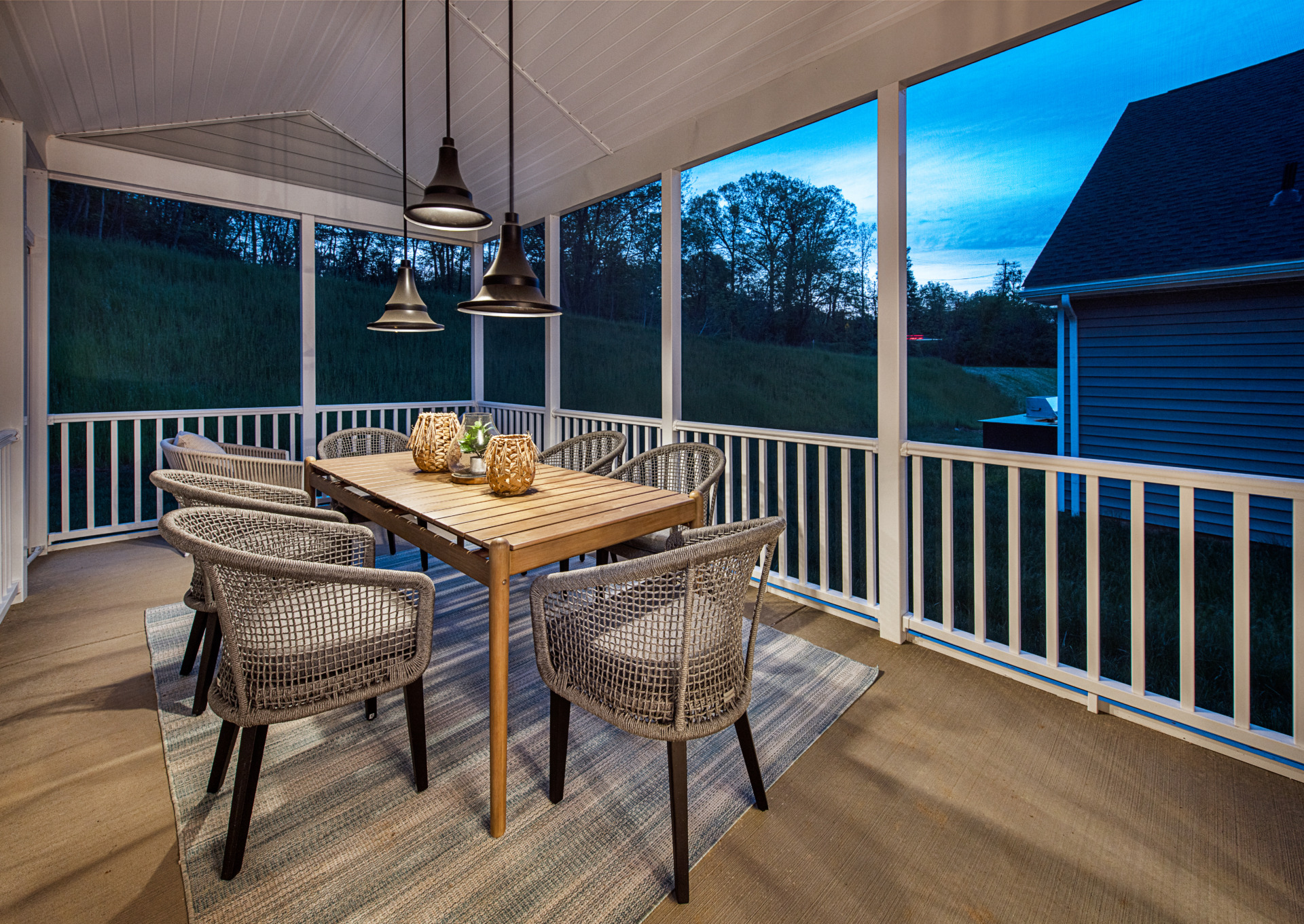Enjoy the fresh air without the fuss. Screened porches offer the perfect open-air dining spot or lazy Sunday morning hangout. Additions like ceiling fans, wall-mounted TVs, heaters, and accent lighting make these spaces feel just as cozy and functional as any indoor room. It’s the perfect setting for watching the game, enjoying a good book, or sharing a quiet meal—all with the added benefit of a gentle breeze.
